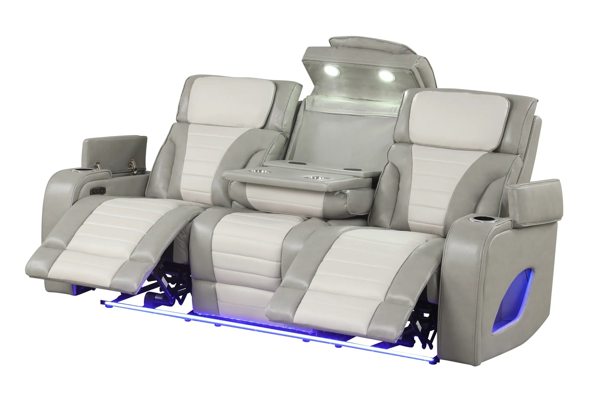 Sofa - Power Reclining, Drop Down Table with Cupholders, USB, Wireless Charger, LED, Reading Light, Storage Arms