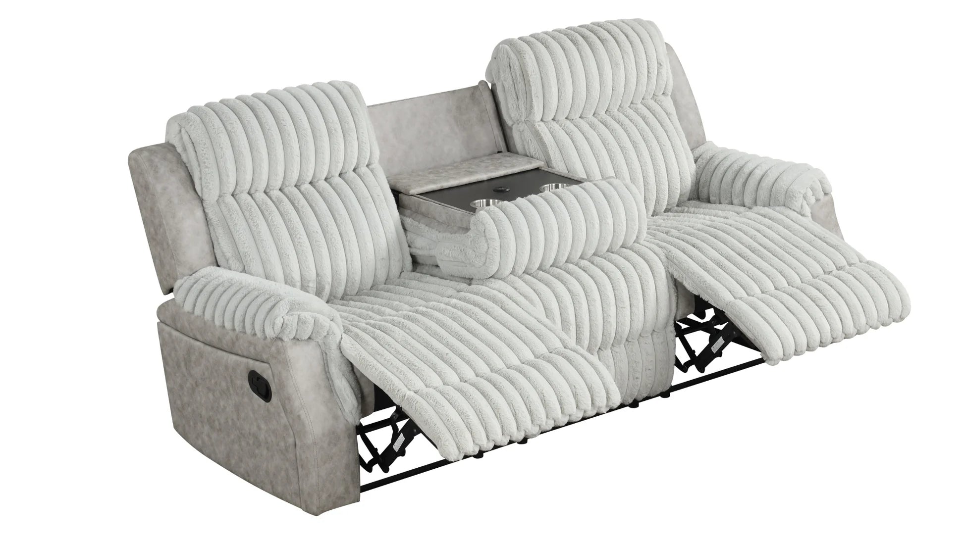Transform your living room into the ultimate relaxation zone with the S4230 Willow Grey Recliner Set. This sophisticated collection features smooth gliding recliner that move effortlessly, paired with a convenient center console offering built-in storage, USB charging ports, and cup holders. Perfect for movie nights or unwinding after a long day, this set combines comfort with practical functionality. The sleek grey upholstery complements any decor while the integrated tech features keep your essentials within arm's reach.